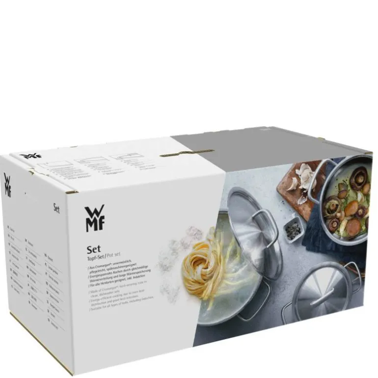 Grytesettet er laget av Wmf, som er en av verdens ledende produsenter av kjøkkenredskaper og kokekar. Takket være WMfs unike teknikk, TransTherm, kan kokekarene brukes på alle typer av varmekilder med best resultat, selvfølgelig også på komfyrer med induksjon.