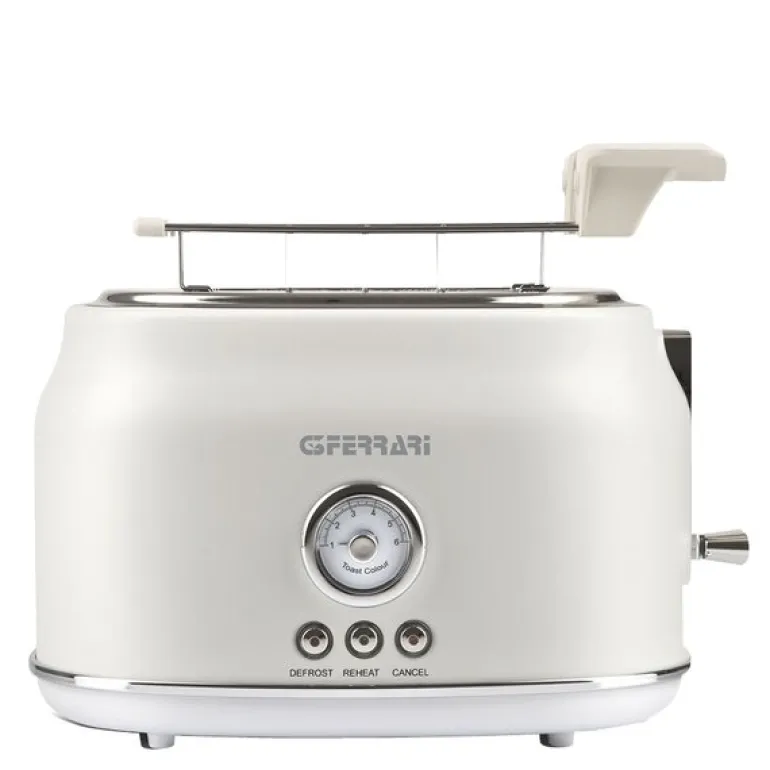 G3 Ferrari Artista er en brødrister for to skiver, laget i metall med et retrodesign som gir kjøkkenet et visuelt løft. De brede åpningene gjør den egnet til flere brødtyper, og funksjonene gir fleksibilitet i hverdagen.