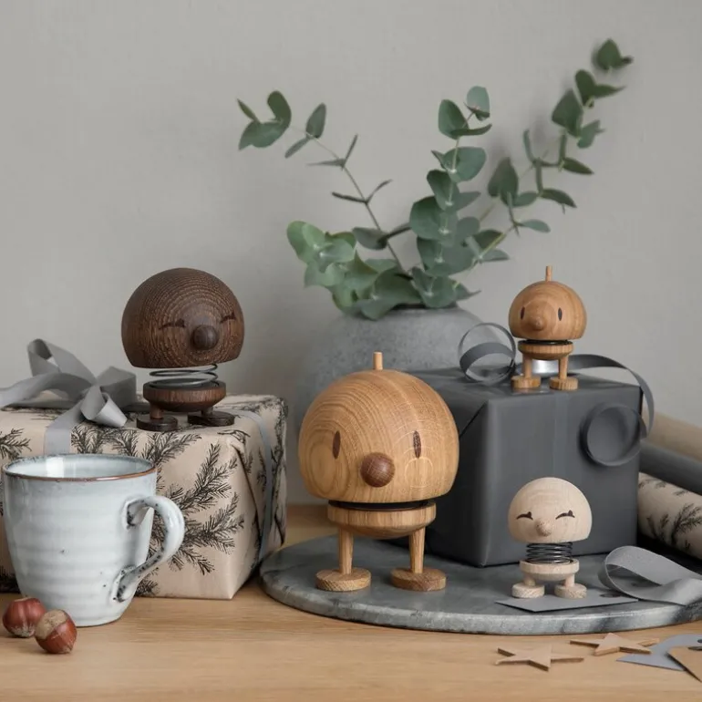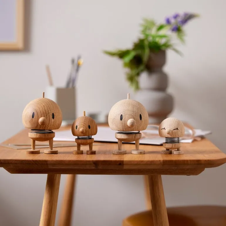 Hoptimist Bumble liten eik er en vakker liten figur som sprer optimisme og glede overalt hvor den plasseres. Det runde, harmoniske designet i naturlig treverk gir et tidløst uttrykk som passer i ethvert hjem.