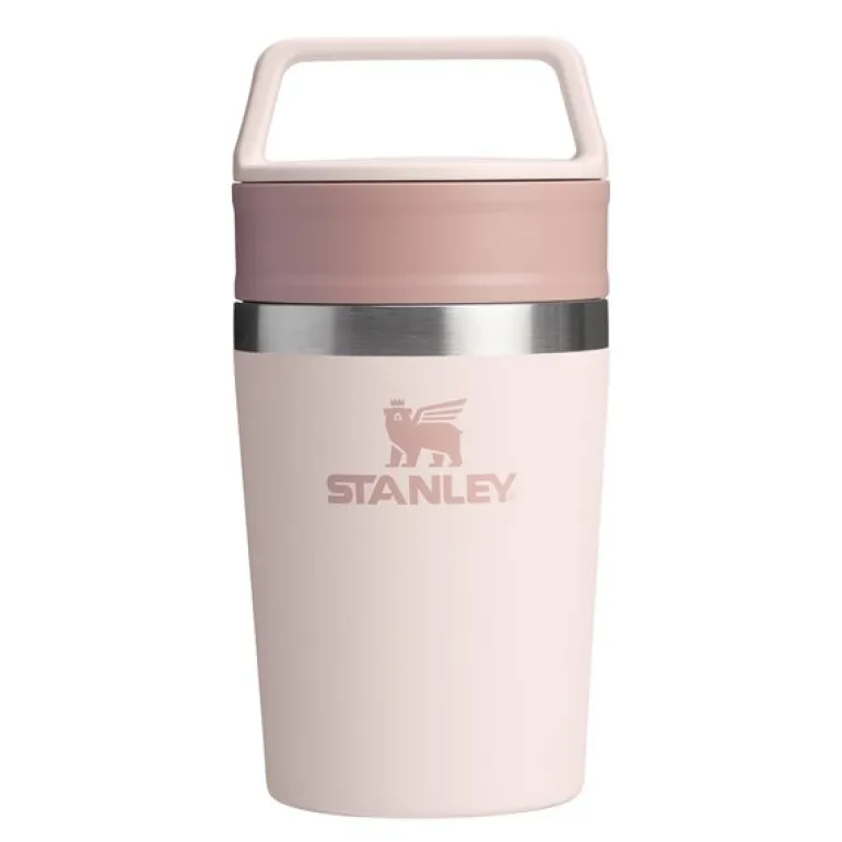 Café To Go termokopp 23 cl i den elegante fargen Rose Quartz fra Stanley er det perfekte valget for å nyte favorittdrikken din hvor som helst. Med dobbeltvegget isolasjon og solid rustfritt stål holder koppen drikken varm eller kald i timevis, samtidig som smaken forblir frisk. Enten du er på vei til jobb, nyter en rolig morgen hjemme eller tar en pause på tur, er denne termokoppen en pålitelig følgesvenn.