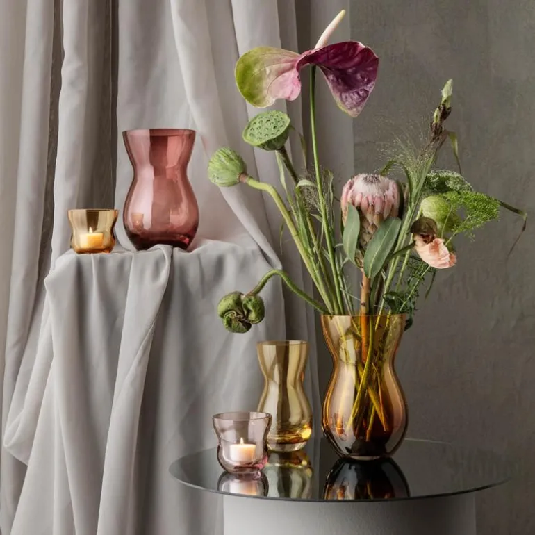 De to nye Calabas-telysholderne reflekterer både telysets flamme og den fargeestetikken du kjenner fra vasene i serien på vakreste vis. Calabas-telysholderne har begge en diameter på 8,5 cm og kommer i amber og burgundy i samme myke profil som vasene. Velg den varme eller den kalde fargen ? eller la dem komplementere hverandre, og skap et elegant og stilfullt preg på bordet eller i vinduskarmen ? ev. sammen med en eller flere Calabas-vaser. Tradisjonen tro hos Holmegaard, er både vasene og telysholderne i Calabas-serien munnblåst av dyktige glassblåsere med mange års erfaring. De kan håndverket sitt til fingerspissene, og setter sin ære i å skape anvendelig glasskunst i ypperste kvalitet.
