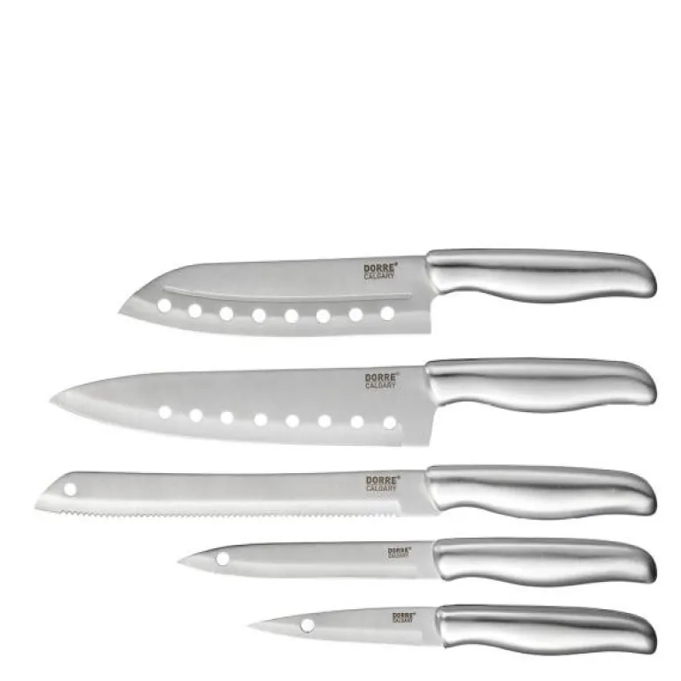 5 skarpe kvalitetskniver fra Dorre som hjelper deg å lykkes på kjøkkenet. Calgary Knife Set består av en japansk kniv, en kokkekniv, en brødkniv, en allsidig kniv og en skallkniv.