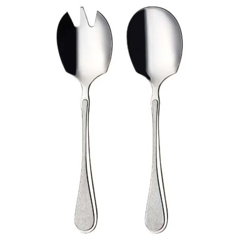 Salatsett fra den myke og detaljrike Carina-serien fra Hardanger Bestikk. Bestikket er utført i børstet stål som gir en robust og glatt finish. Settet inneholder en serveringsskje og en salatgaffel med gripevennlig håndtak og god dybde. Stålet som er av 18/10 rustfritt stål tåler oppvaskmaskin, og produktet har livstidsgaranti. Salatsettet leveres i gaveeske.