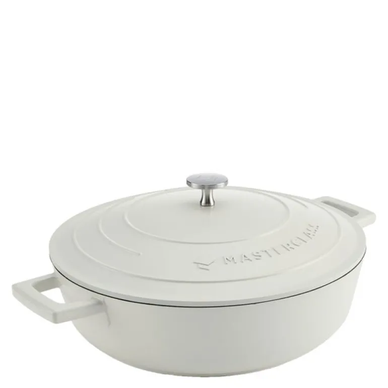 MasterClass lav kremfarget gryte i støpt aluminium på 4 liter kombinerer lett håndtering med solid funksjonalitet, ideell for daglig bruk på kjøkkenet. Med samme varmefordeling som støpejern, men mye lettere, sørger denne gryten for jevn tilberedning og rask smakutvikling i alle typer retter. Det slitesterke dobbeltlags non-stick-belegget gir høy motstandskraft og krever mindre olje, perfekt for sunnere matlaging.