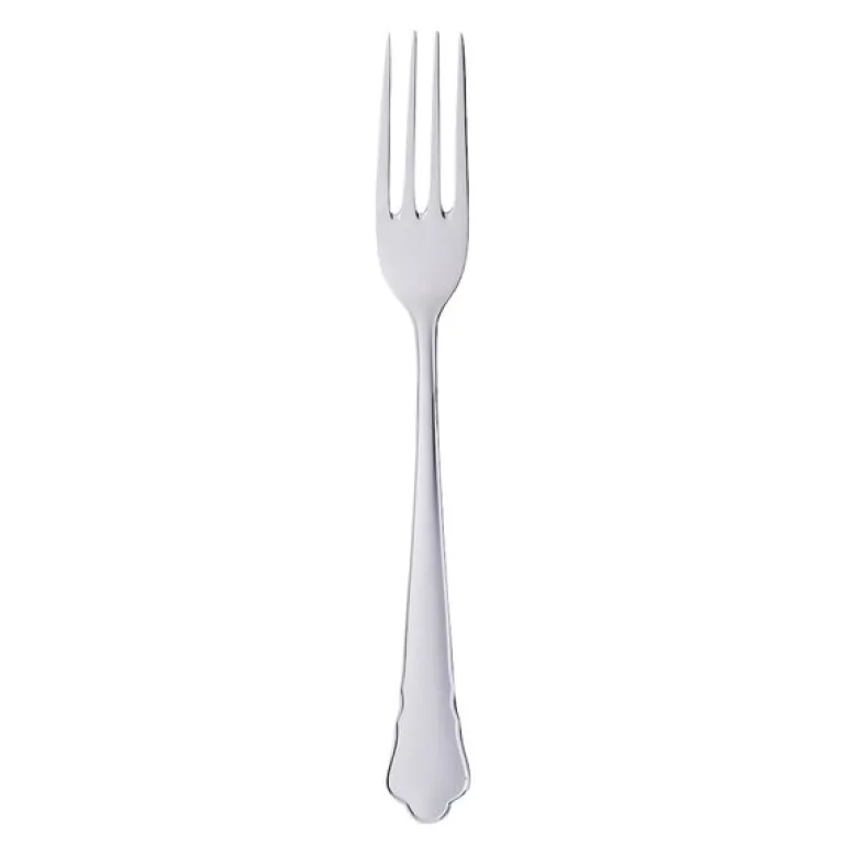 Chippendale lunsjgaffel 17,8 cm EPNS fra Gense. Chippendale er opprinnelig navnet på en møbelstil i 1700-tallets rokokko, oppkalt etter møbelsnekkeren Thomas Chippendale. Stilen kjennetegnes med den fiolinlignende formen på for eksempel stolrygger, og det er den samme formen som kommer enkelt til uttrykk i sølvbestikket Chippendale. Avhengig av hvordan du kombinerer det kan bestikket være både overdådig og enkelt. Design: Studio GAB