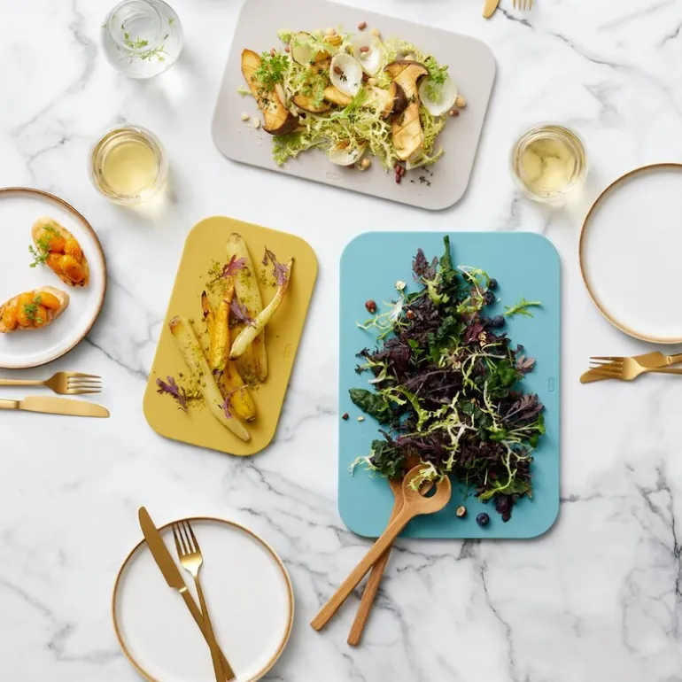 De er ideelle for daglig bruk, enten du skal kutte urter, hakke grønnsaker eller skjære brød. Takket være det gjennomtenkte designet kan skjærebrettene også brukes til servering, og de passer perfekt til å legge frem brød, oster, tapas eller pølser direkte på bordet.