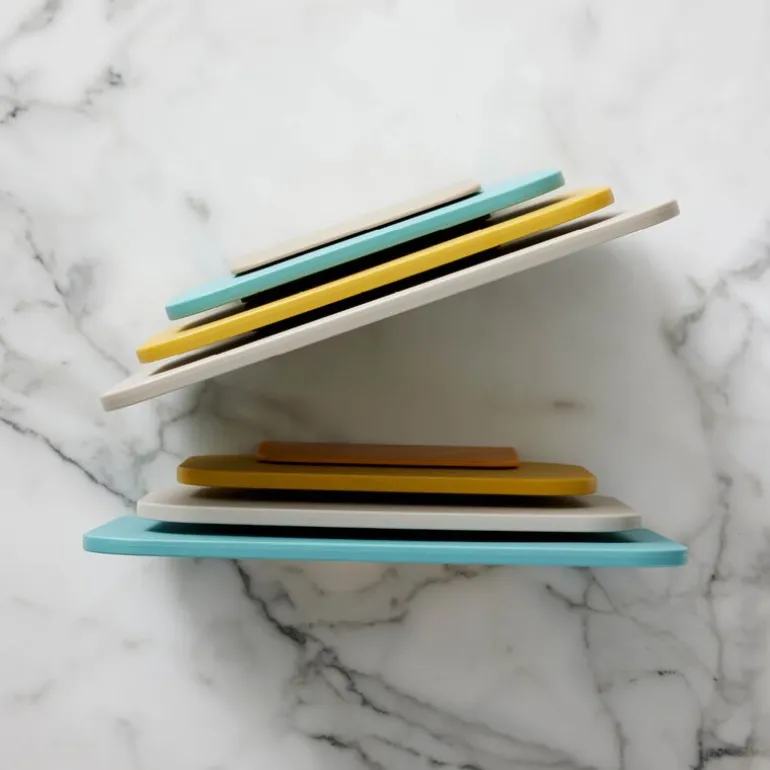 Skjærebrettene er laget av et ekstra hardt materiale som er motstandsdyktig mot fukt, noe som gir høy hygiene og sikrer at knivene dine forblir skarpe lenger. Alle brettene har en tykkelse på 10 mm, som gir dem en solid og formstabil kvalitet. Skjærebrettene tåler oppvaskmaskin, noe som gjør rengjøringen enkel og bekymringsfri.