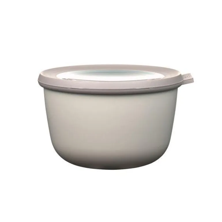 Skål med lokk 1 l nordic white. Mepal Cirqula oppbevarings- og serveringsskål – romslig, praktisk og dekorativ i kjølige, nordiske fargetoner. Mepal Cirqula skålen er en handy all-round skål, som kan brukes til oppbevaring av matvarer i både kjøleskapet og kjøkkenskapet. Samtidig er denne dekorative skålen også flott til servering.Skålen kan brukes i fryser ned til -20 grader, i mikroovn og kan vaskes i oppvaskmaskin. Oppvarming til maks 110 grader og uten lokk.Formen på skålen gjør at den er lett å stable, og de tomme skålene tar derfor liten plass i kjøkkenskapet.Skålens lokk har et transparent vindu, så at man enkelt kan se innholdet, og det tettlukkende lokket gjør skålen vanntett. Materialet er PP-plast, et robust og støtsikkert materiale, som passer til det meste.