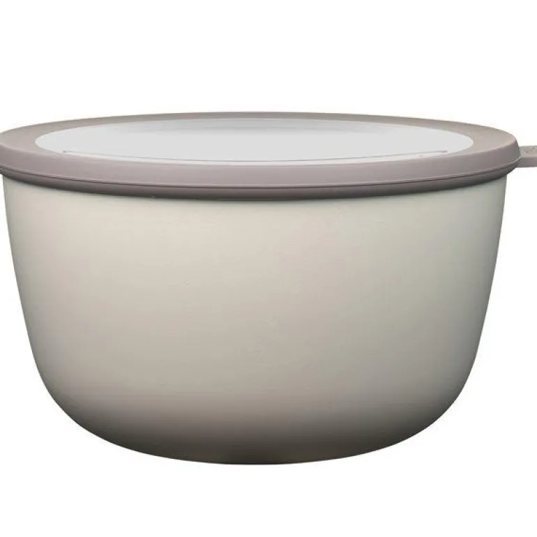 Skål med lokk 3 l nordic white. Mepal Cirqula oppbevarings- og serveringsskål – romslig, praktisk og dekorativ i kjølige, nordiske fargetoner. Mepal Cirqula skålen er en handy all-round skål, som kan brukes til oppbevaring av matvarer i både kjøleskapet og kjøkkenskapet. Samtidig er denne dekorative skålen også flott til servering.Skålen kan brukes i fryser ned til -20 grader, i mikroovn og kan vaskes i oppvaskmaskin. Oppvarming til maks 110 grader og uten lokk.Formen på skålen gjør at den er lett å stable, og de tomme skålene tar derfor liten plass i kjøkkenskapet.Skålens lokk har et transparent vindu, så at man enkelt kan se innholdet, og det tettlukkende lokket gjør skålen vanntett. Materialet er PP-plast, et robust og støtsikkert materiale, som passer til det meste.