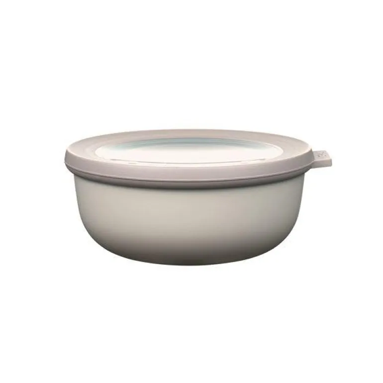 Skål med lokk 0,75 l nordic white. Mepal Cirqula oppbevarings- og serveringsskål – romslig, praktisk og dekorativ i kjølige, nordiske fargetoner. Mepal Cirqula skålen er en handy all-round skål, som kan brukes til oppbevaring av matvarer i både kjøleskapet og kjøkkenskapet. Samtidig er denne dekorative skålen også flott til servering.Skålen kan brukes i fryser ned til -20 grader, i mikroovn og kan vaskes i oppvaskmaskin. Oppvarming til maks 110 grader og uten lokk.Formen på skålen gjør at den er lett å stable, og de tomme skålene tar derfor liten plass i kjøkkenskapet.Skålens lokk har et transparent vindu, så at man enkelt kan se innholdet, og det tettlukkende lokket gjør skålen vanntett. Materialet er PP-plast, et robust og støtsikkert materiale, som passer til det meste.