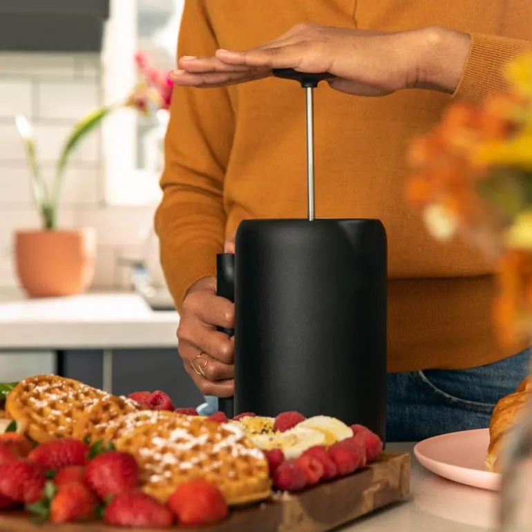 Kuren for den vanlige kafetieren. Claras unike vakuumisolerte vegger opprettholder den ideelle bryggetemperaturen for optimal ekstraksjon og holder kaffen varm for andre og tredje kopper, mens den forbedrede mesh-filtreringen gjør at de smaker like glatte og siltfrie som den første. Uanstrengt å bruke – bare fyll opp til forholdslinjene, rør om – og med et nonstick-interiør som er en drøm å rengjøre, alt i en slående og bruddsikker design: Clara er din evige French Press.