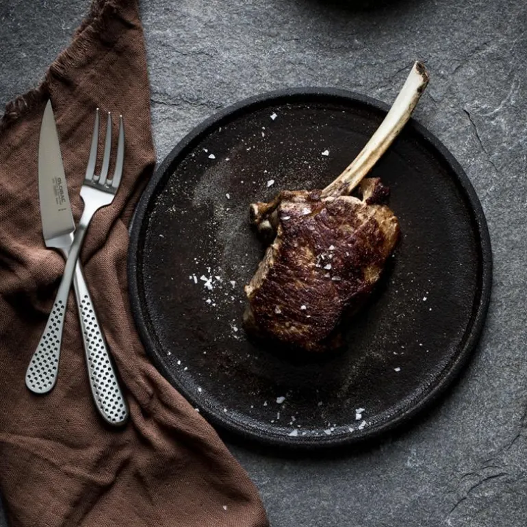 Dekk bordet smakfullt med Globals bestikk. Med det skarpe bestikket skjærer du like lett gjennom hverdagspizzaen som søndagsbiffen. Selges i sett med to gafler og to kniver. Oppvask for hånd anbefales.