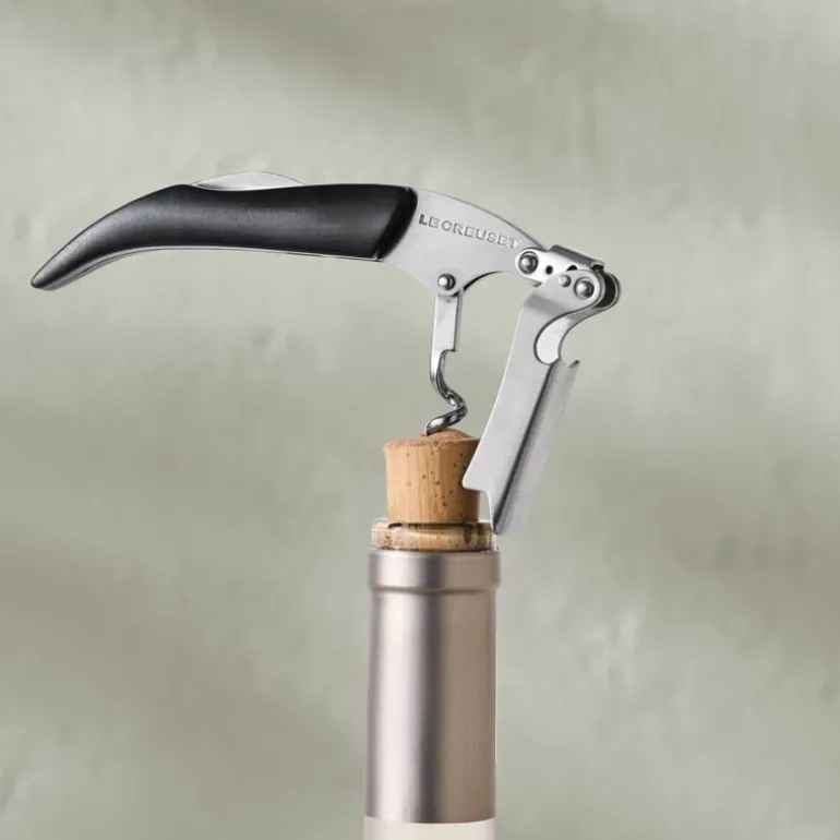 Utrust kjøkkenet ditt med Le Creusets ikoniske kelner vinåpner, utstyrt med et stilrent svart håndtak som utstråler både klasse og funksjon. Denne korketrekkeren er det ultimate verktøyet å ha for hånden, enten du er på piknik, nyter ferien, eller griller med venner. Den kompakte størrelsen gjør den enkel å ta med seg, mens det robuste designet sikrer at hver flaske åpnes raskt og uten problemer. Servitører og vinkjennere verden over setter pris på dens pålitelighet og presisjon.