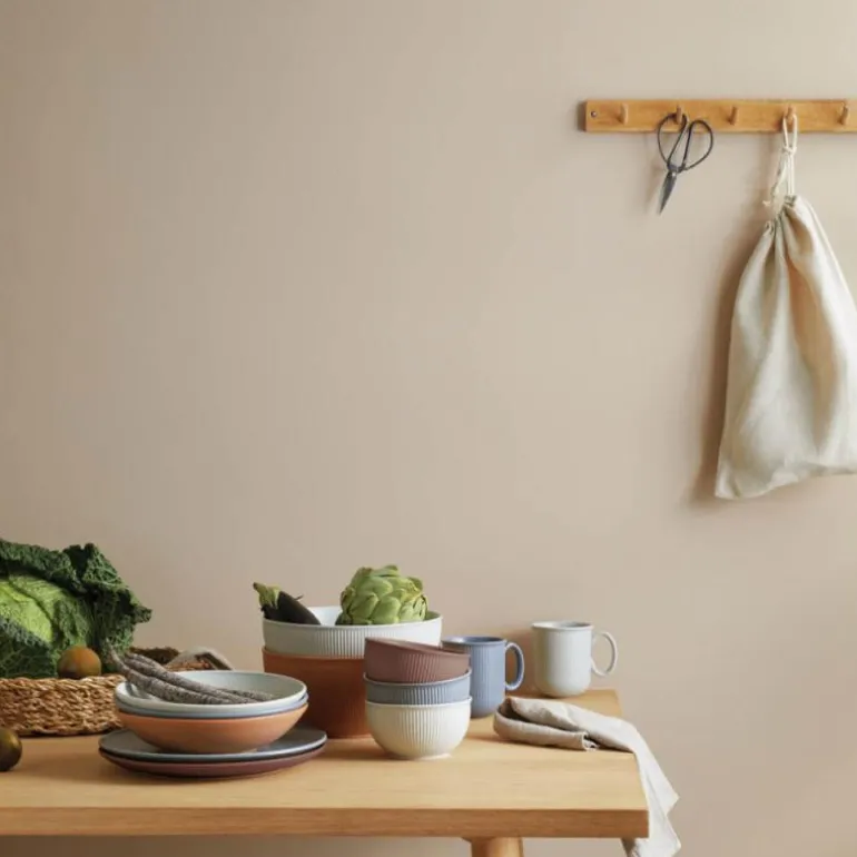 Clay skål 13 cm rust fra Thomas. Thomas Clay imponerer med sin funksjonalitet og den naturlige følelsen av steintøy. Den rillede strukturen og de svarte flekkene i materialet gir en autentisk karakter med et håndlaget utseende. Årsaken til prikkene i glasuren er jerninnslag som smelter under brenneprosessen og gir keramikken det spesielle utseende.