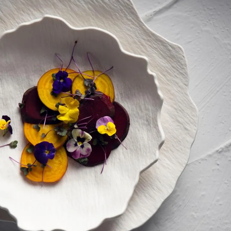 Den delikate, bølgete og organiske formen gir fatet et moderne og mykt uttrykk