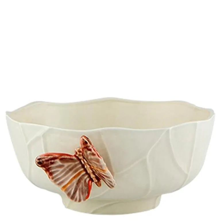 Cloudy Butterfly skål 3L. En enestående skål fra Bordallo Pinheiros kolleksjon Cloudy Butterfly som er resultatet av et designsamarbeid med Claudia Schiffer. Skålens overflate er lett teksturert og en vakker sommerfugl i jordnære nyanser pryder skålens side. Schiffers forkjærlighet for det landlige gjenspeiles tydelig i denne vakre skålen, som gir et romantisk uttrykk til bord og hjem. Skålen blir en iøynefallende interiørdetalj som kan fylles med vakre frukter eller bare stå tom. Den trenger ikke så mye mer, skålene er fantastisk slik den er.