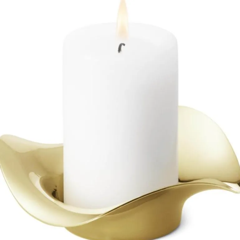 Cobra lysestake på 13 cm i gull farge er en elegant kubbelysestake fra den ikoniske Cobra-kolleksjonen, kjent for sine bølgeformede designlinjer. Laget av rustfritt stål og belagt med PVD-gull, bringer denne lysestaken et snev av luksus inn i hjemmet ditt. Når lyset tennes, reflekterer den speilpolerte overflaten lysstrålene, og skaper en varm og innbydende atmosfære som gjør enhver krok i rommet koselig.