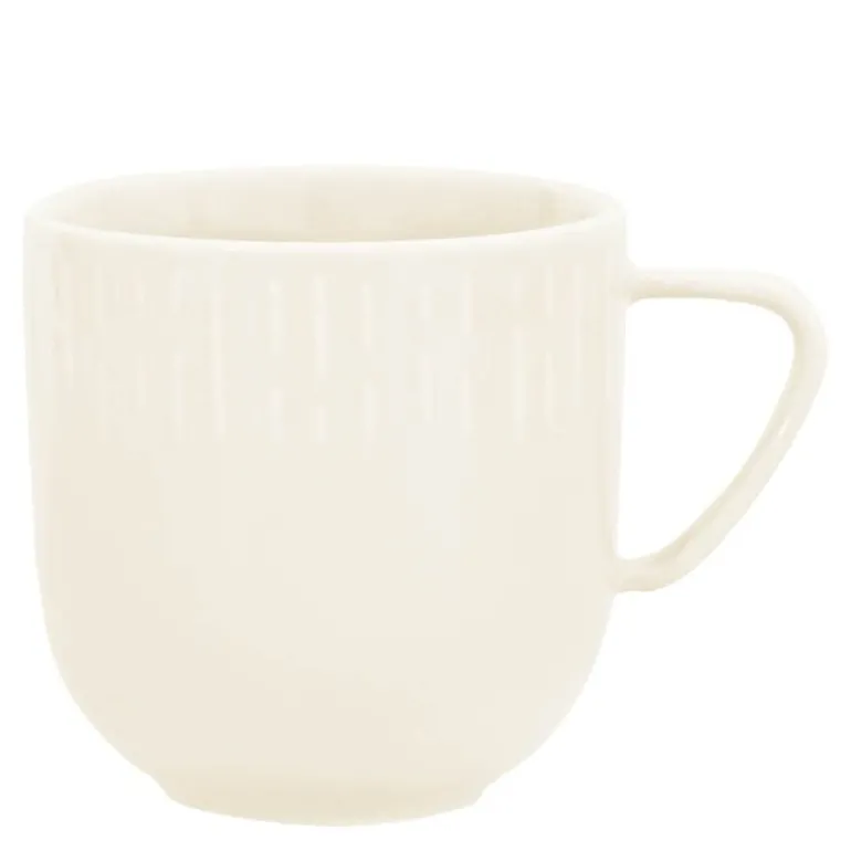 Confetti krus i vanilla fra Aida er en stilren og funksjonell kopp med en kapasitet på 35 cl, perfekt for kaffe, te eller kakao. Designet er en del av den populære Confetti-serien, hvor det subtile relieffmønsteret langs kanten gir en fin kontrast til den glaserte overflaten.