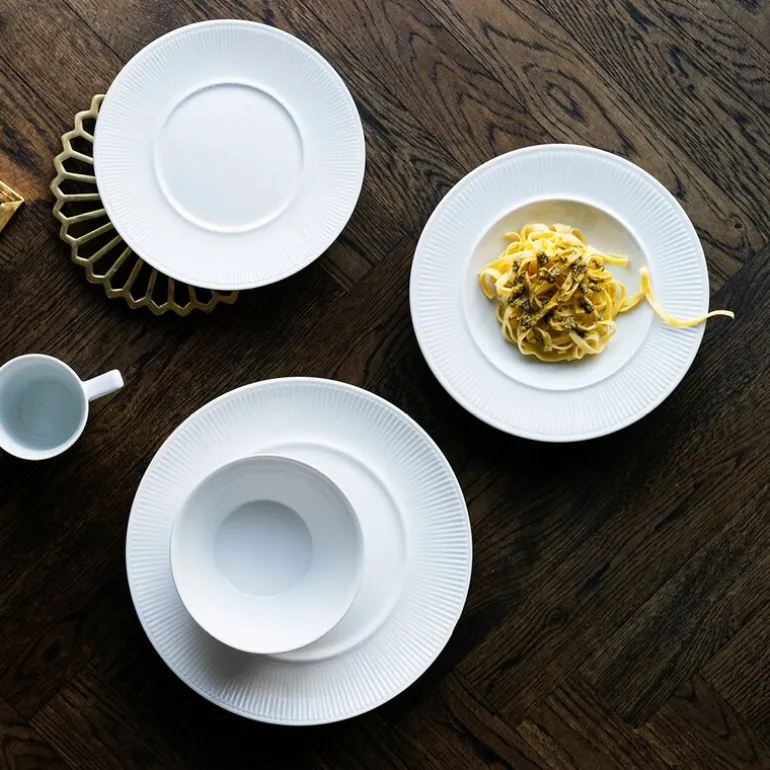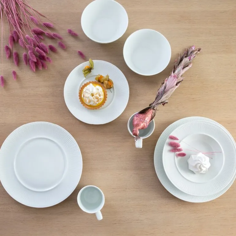Contour serien har et elegant relieff dekor som kombinerer moderne uttrykk med tradisjon. Produsert av feltspatporselen med høy hvithetsgrad.