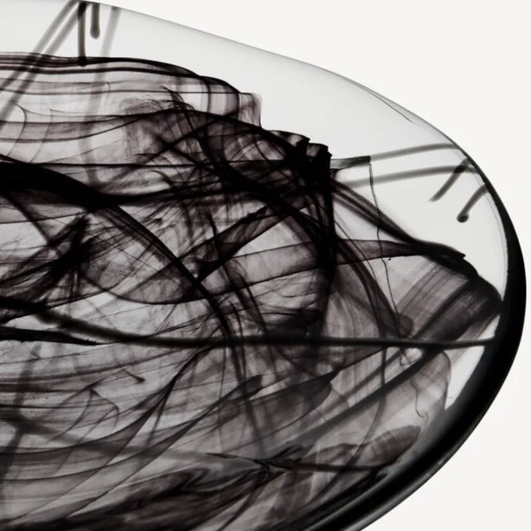 Kosta Bodas Contrast fat 38 cm svart/svart kombinerer kunst og funksjonalitet på en enestående måte. Ved hjelp av glasssentrifugeringsteknikken, som har sine røtter i Glassriket fra 1950-tallet, skapes unike, bølgende mønstre som gjør hvert fat til et mesterverk.