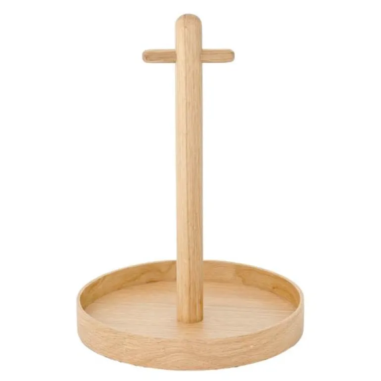 T-håndtaket gjør det enkelt å bære og eikekanten hindrer ting i å skli av. En lakkert finish beskytter eiken mot søl og flekker.