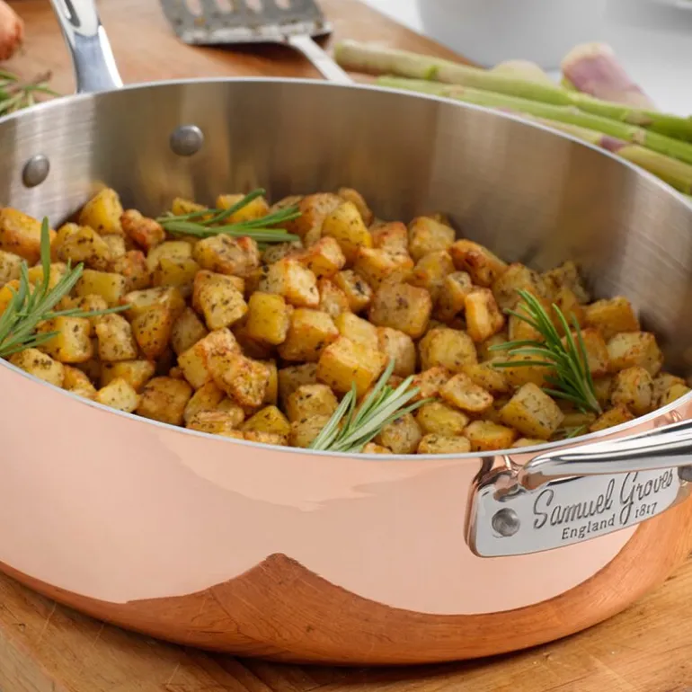Konstruksjonen med kobber, rustfritt stål og aluminium sørger for at pannen varmes opp raskt og kjøles ned like raskt – perfekt for presis matlaging. Håndtakene i rustfritt stål holder seg svale, og det medfølgende kobberlokket gjør pannen velegnet for både tilberedning og servering. Håndvask anbefales. Laget i Storbritannia for deg som setter pris på kvalitet og detaljer.
