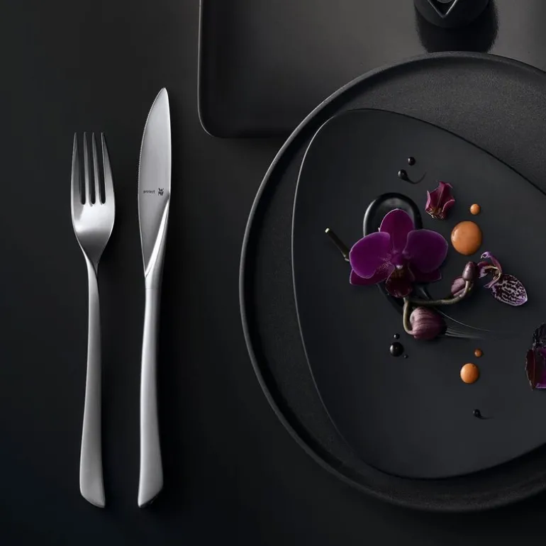 Skap den perfekte spiseopplevelsen med dette flotte Corvo-bestikket fra WMF i et markant og vakkert design. Den flotte kniven er samtidig utrolig fleksibel og kan ligge i flere posisjoner slik at du kan være ekstra kreativ med borddekkingen. Flott design med et unikt overflatebelegg i eksklusivt Cromargan protect®, som er svært motstandsdyktig overfor riper og bruksspor. Samtidig er bestikket utrolig lett å rengjøre. Dette ergonomiske bestikket er fremstilt i ypperste håndverkskvalitet og ligger perfekt i hånden. Basert på den årelange erfaringen og ekspertisen som WMF er kjent for. Knivene har smidde stålblader, noe som gjør at de bevarer sin skarphet og elastisitet i mange år. Tåler oppvaskmaskin for rask og enkel rengjøring. Settet leveres i en flott eske for en sikker og praktisk oppbevaring.