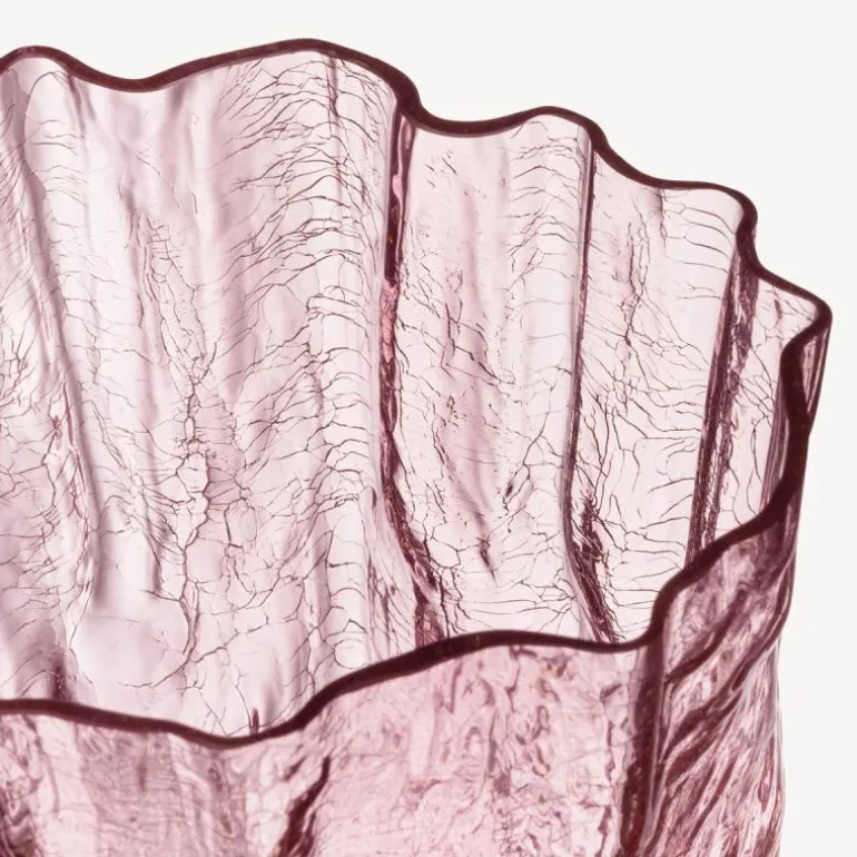 Crackle vase 28 cm rosa fra Kosta Boda er en hyllest til sprukket, vakkert bevart glass. Serien har et skulpturelt og utrykksfullt ytre, som skapes med en gammel håndverksteknikk der det varme glasset dyppes i iskaldt vann.
