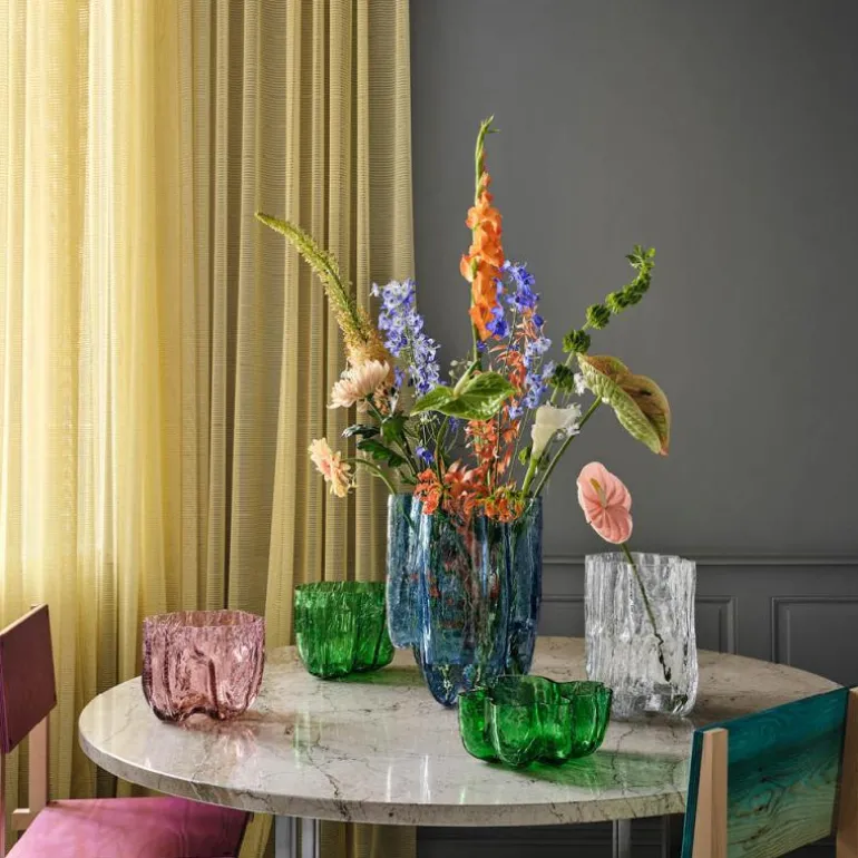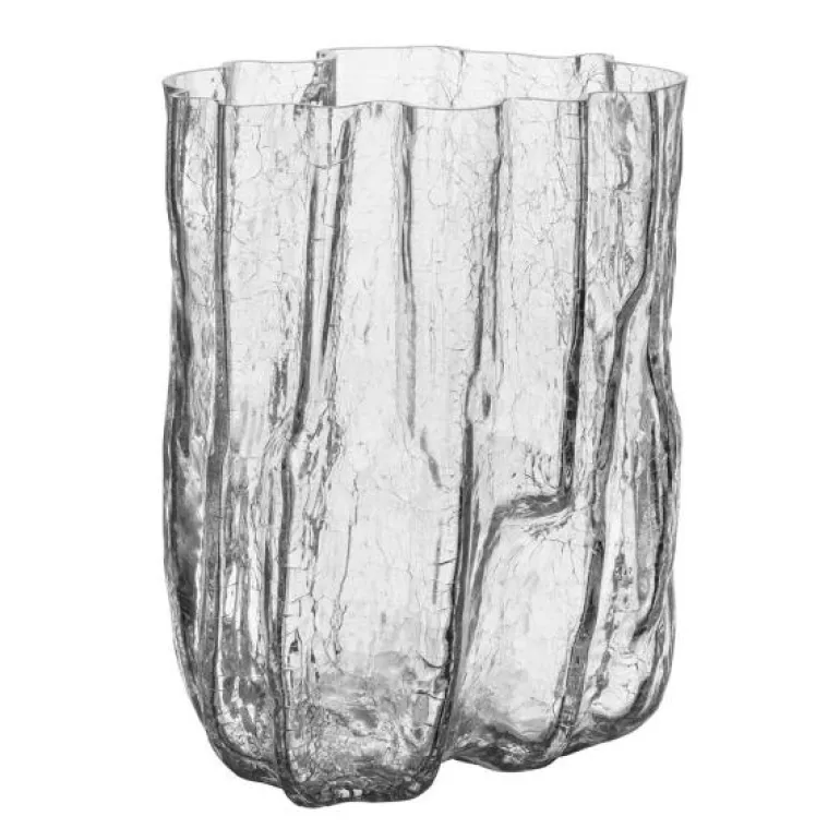 Crackle vase 28 cm fra Kosta Boda er en hyllest til sprukket, vakkert bevart glass. Serien har et skulpturelt og utrykksfullt ytre, som skapes med en gammel håndverksteknikk der det varme glasset dyppes i iskaldt vann.