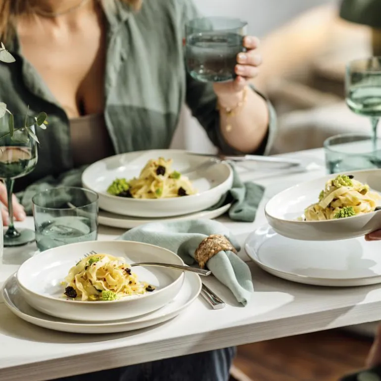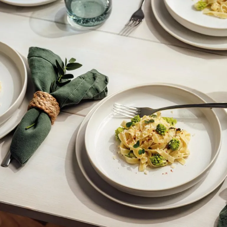 Den fredelige, naturlige fargen til «Cotton» utstråler varme og en avslappet atmosfære som gjør at alle gjenstander enkelt kan kombineres med alle andre farger i Crafted- eller Perlemor-kolleksjonene. Dette gjør det mulig å lage stilige nye bordkonsepter hver gang.