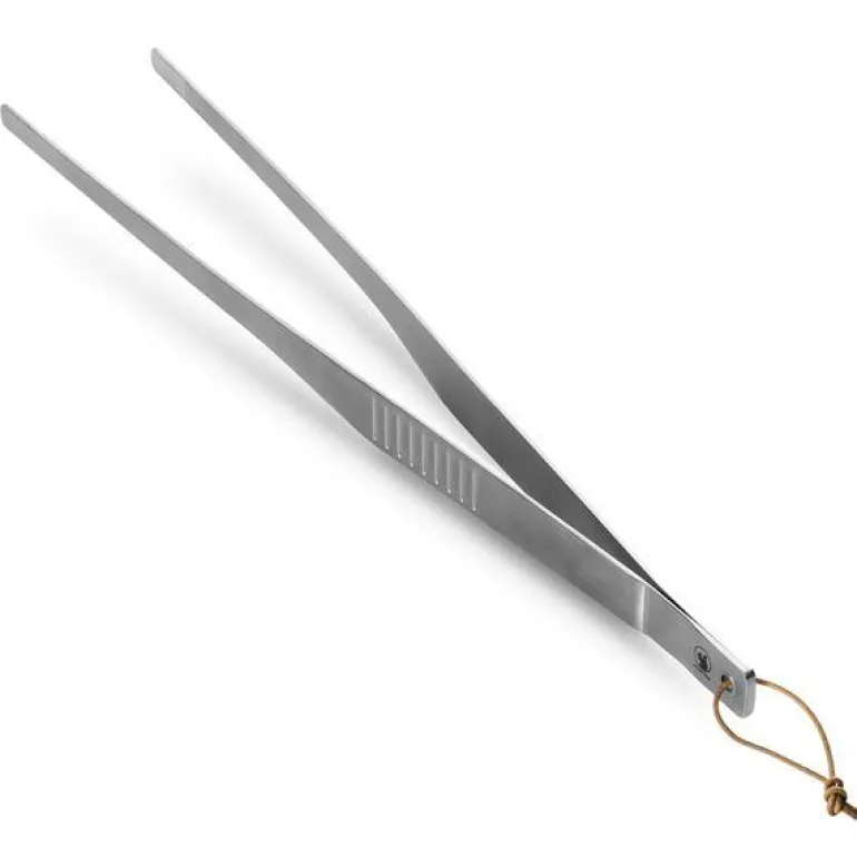 Culina BBQ PinsettGrillredskaper i eksklusivt, elegant design utført i 2,5 mm stål. Små detaljer som lærstropper og håndtak i oljet eik får redskapene til å fremstå eksklusive.45 cm.Rengjøring med såpevann anbefales, også før første bruk. Design og funksjon smelter her sammen på flotteste vis. Ved bruk vil redskapene få personlig patina og blir bare vakrere mer de brukes.