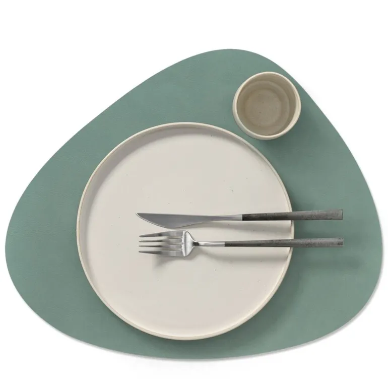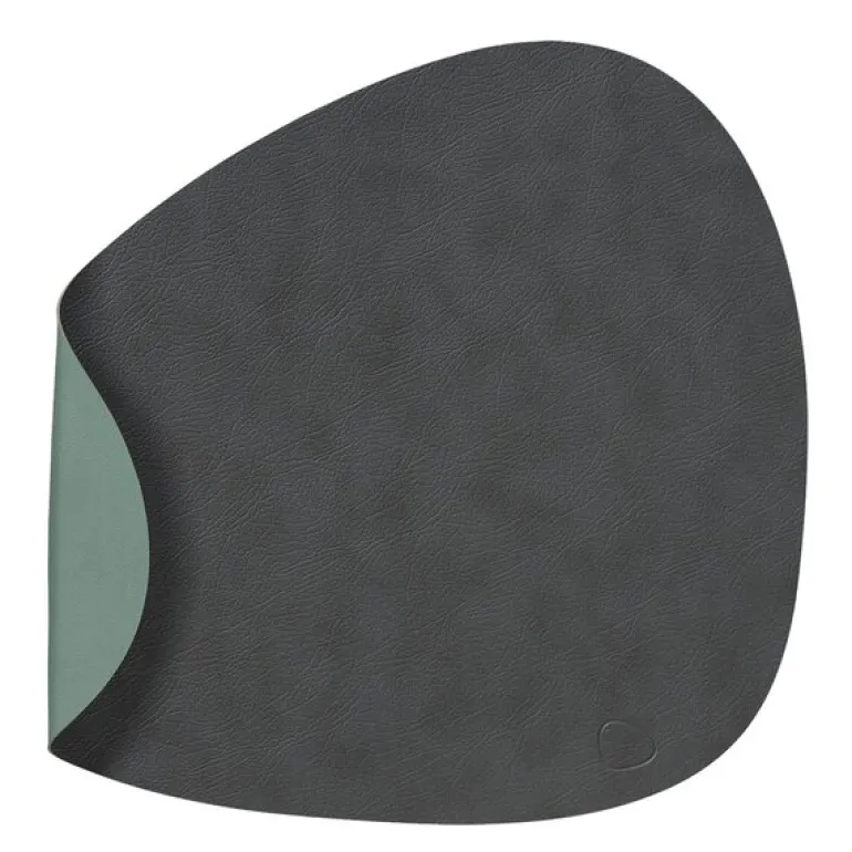 Curve Cloud spisebrikke tosidig antrasitt/pastellgrønn. TABLE MAT DOUBLE CURVE er LIND DNAs mest allsidige spisebrikke – en tosidet spisebrikke laget av OEKO-TEX®-sertifisert resirkulert skinn med forskjellige farger og overflater på hver side. De forskjellige fargene gjør det mulig å endre utseendet på borddekningen en kort stund, ved å bare snu LIND DNA TABLE MAT DOUBLE CURVE.