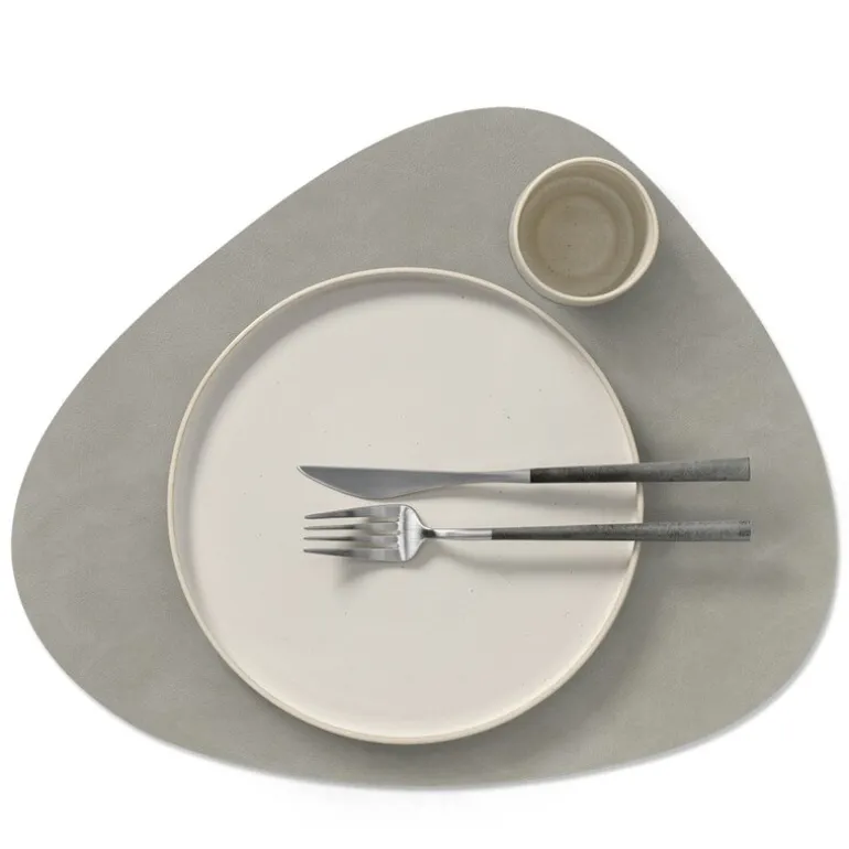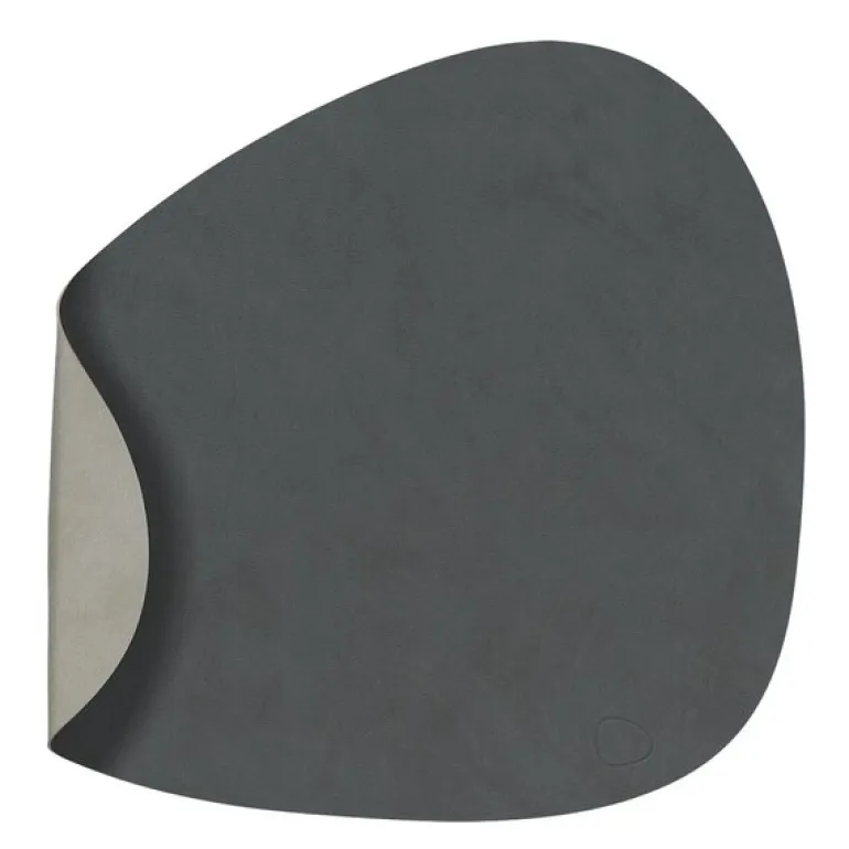 Curve Nupo spisebrikke tosidig antrasitt/lys grå. TABLE MAT DOUBLE CURVE fra LIND DNA er en funksjonell og stilfull spisebrikke, designet for maksimal fleksibilitet. Denne tosidige spisebrikken er laget av OEKO-TEX®-sertifisert resirkulert skinn, og har ulike farger og overflater på hver side, noe som gjør det enkelt å endre utseendet på bordet ved å snu den.