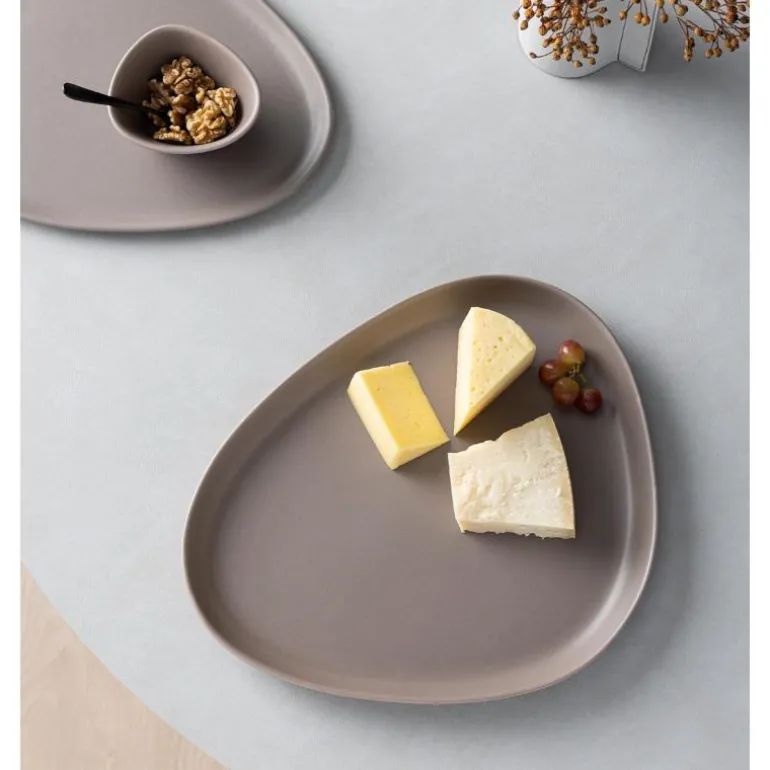 Curve Stoneware serveringsfat 35×30 cm varm grå. Den karakteristiske buede formen på det håndlagde Curve Stoneware serveringsfatet gir deg muligheten til å leke enda mer med borddekkingen din ved å tilføye en ny dimensjon av kurver. Ved å kombinere dine LIND DNA spisebrikker med vårt matchende service i stein, skaper du den perfekte harmonien på bordet ditt – i hverdagen så vel som til festlige anledninger.