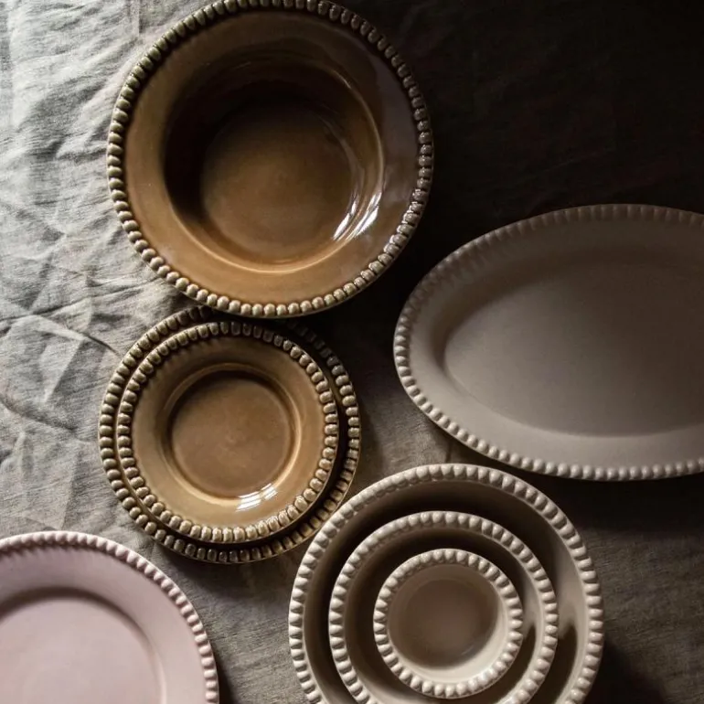 PotteryJo DARIA dyp tallerken 26 cm, 2 stk i umbra – stengodstallerkener med et subtilt relieffmønster og dyp, jordnær fargetone. Tallerkenene er håndlaget i Portugal og designet i Sverige, med balanse mellom estetikk og funksjon. Den varme umbra-glassuren gir et rustikt, men elegant preg.