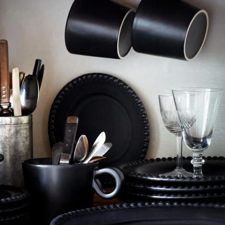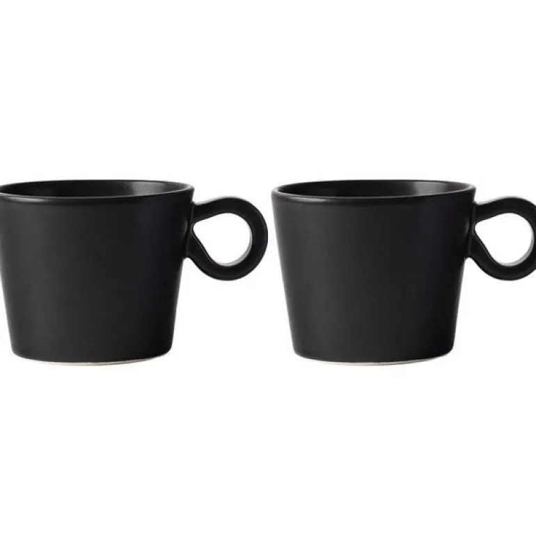 DARIA krus 35 cl ink black, 2-pk, er robuste kopper med stor hank i mørkt stengods. Den dype svarte fargen og det subtile relieffet skaper et moderne og raffinert uttrykk – perfekt for kaffe, te eller varme drikker.