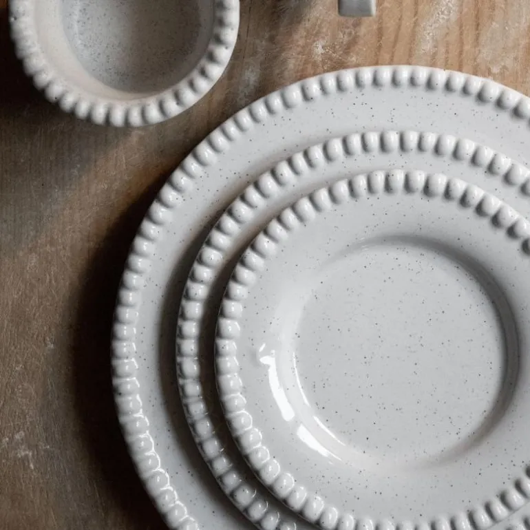 DARIA tallerken 22 cm i cotton white, 2-pk, er en håndlaget asjett i stengods med subtil relieffdekor og tidløs farge. Størrelsen gjør den perfekt for servering av lunsj, salater eller desserter. Produsert i Portugal, designet i Sverige.
