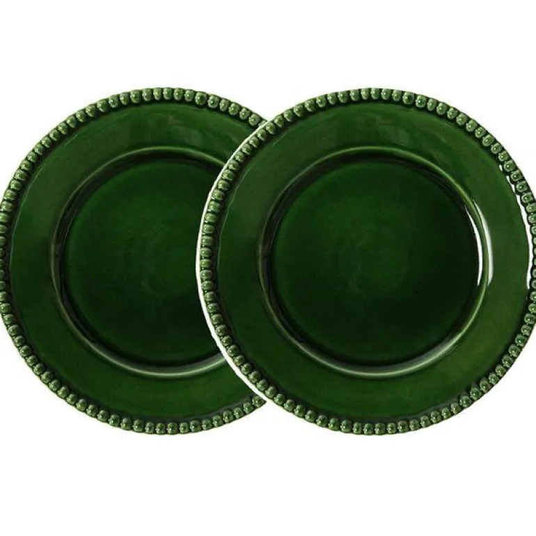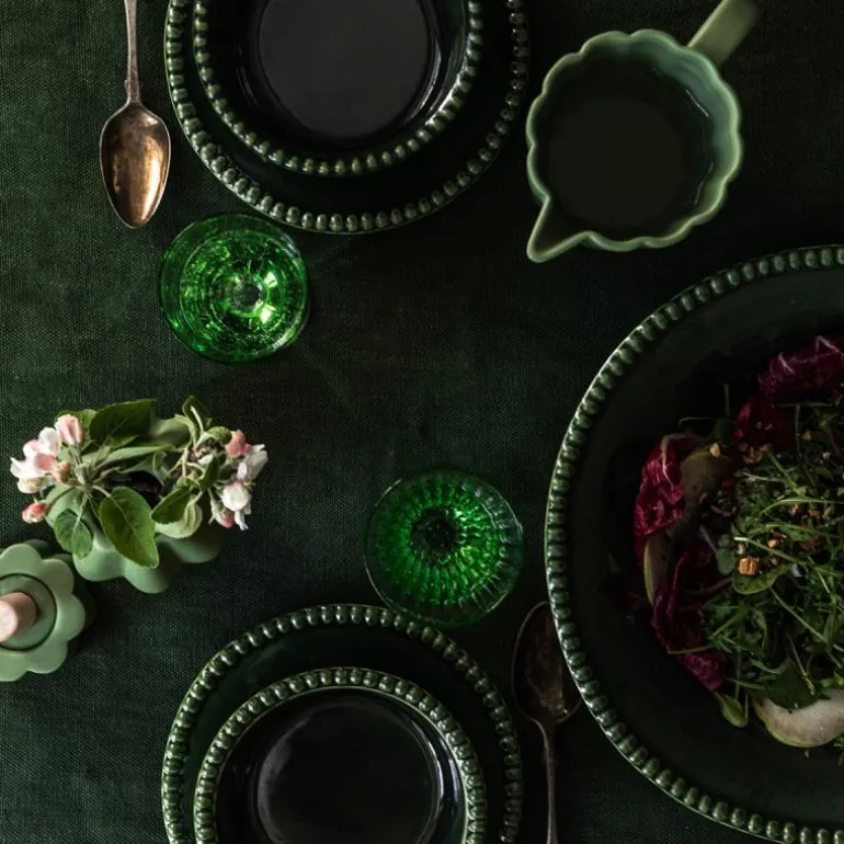 DARIA tallerken 28 cm i fargen moss, i sett med to, kombinerer rå natur med skandinavisk funksjonalitet. Tallerkenene er håndlaget i Portugal i stengods med mykt relieff, og har en beroligende grønnfarge som minner om skogbunnen. Designet er inspirert av spirende liv og naturlig transformasjon – en hyllest til tidens syklus.