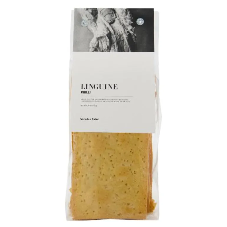 Deli linguine chili, fra Nicolas Vahe. Kan du virkelig nyte en aperitiff uten noe slags italiensk brød? Nei, vel? Nyt smaken av dette sprø linguinebrødet fra Nicolas Vahé sammen med en dipp eller pesto. Fordi enkelt er alltid bedre, brukes kun noen få ingredienser for å lage dette sprø, tynne brødet, som har fått et snev av chili for å tilføre en litt krydret kant. Uansett om du foretrekker å holde det enkelt og bare dyppe i hummus som en rask snack eller gjøre det til en del av en liten forrett, gir linguinebrødet deg en autentisk smak av Italia.