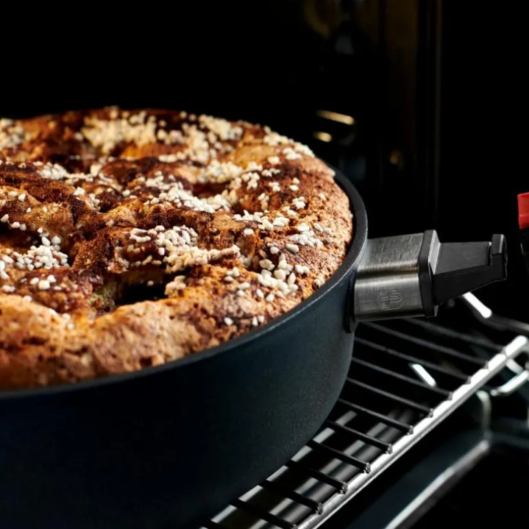Utstyrt med et slitesterkt og PFOA-fritt 5-lags belegg som bla. består av diamant-partikler Avtagbart håndtak. Kan brukes på alle varmekilder, også induksjon. Pannen tåler ovn. Håndtak kan ikke tas i ovn.
