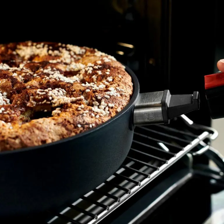 Denne stekepannen er også praktisk i bruk med tanke på rengjøring. Den tåler oppvaskmaskin, men for å opprettholde den lange levetiden anbefales det å vaske den for hånd med varmt vann og mildt oppvaskmiddel.