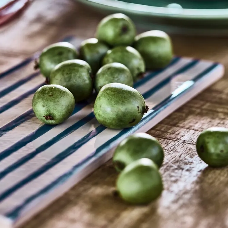 De rektangulære formene og de svakt hevede kantene sørger for praktisk bruk – enten det er til småretter, kaker eller delingstallerkener ved gjestebesøk. Et serveringssett som balanserer eleganse og funksjonalitet, og gir borddekkingen et friskt løft.