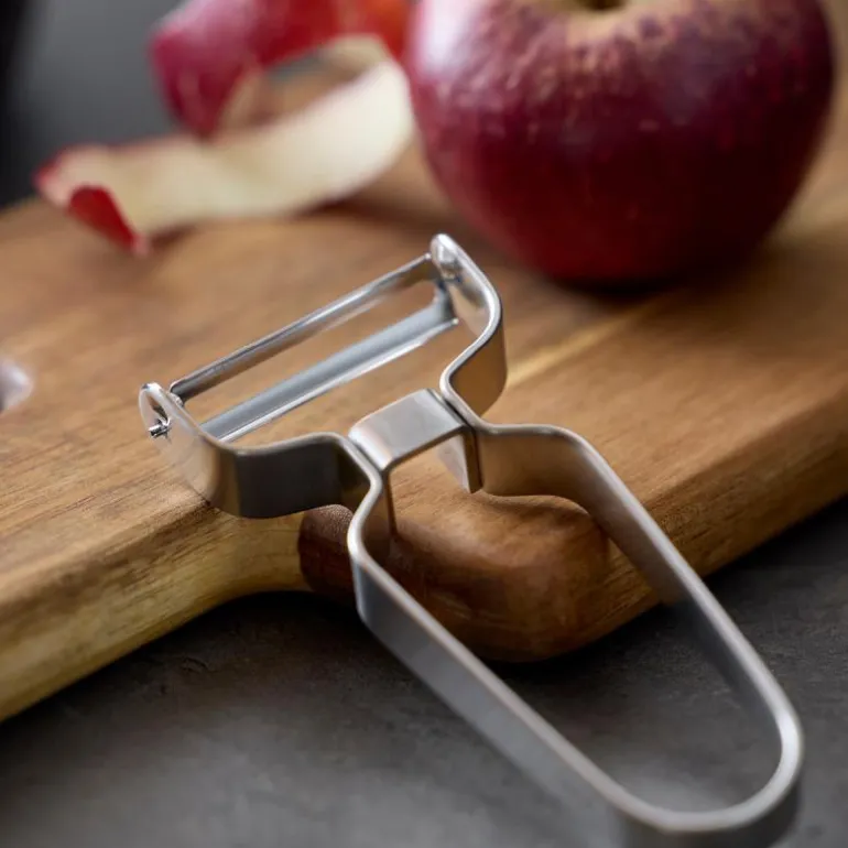 Diversity grønnsaksskreller 12,5×6 cm stål, fra Tareq Taylor. Du har et godt grep om den effektive grønnsaksskrelleren med et blad av sylskarpt kvalitetsstål, uansett om du foretrekker å bruke høyre eller venstre hånd, eller om du skreller fra eller mot deg selv.