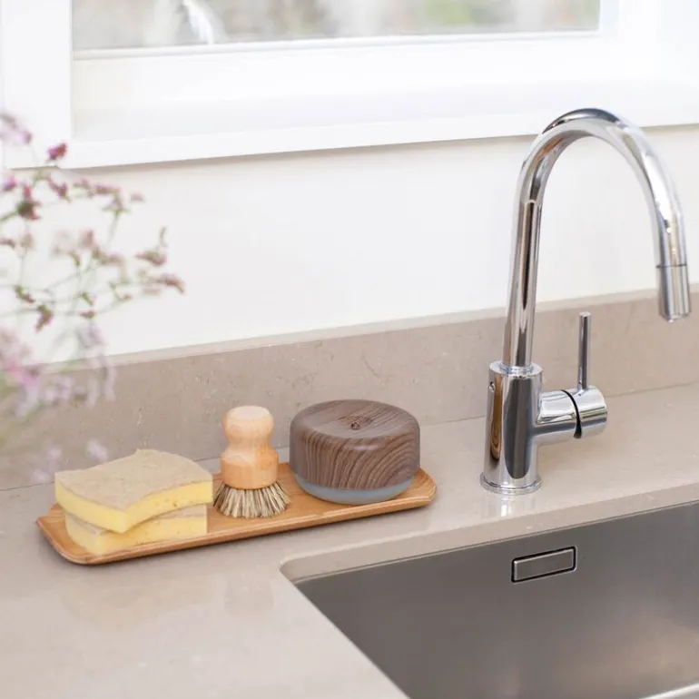 Do-Dish oppvaskmiddelpumpe i mørkt tre fra Bosign er en praktisk og effektiv løsning for enklere og mer kontrollert dosering av oppvaskmiddel. Med et enkelt trykk mot lokket, doseres riktig mengde direkte på oppvaskbørsten eller svampen, noe som gjør rengjøringen både raskere og mer effektiv.