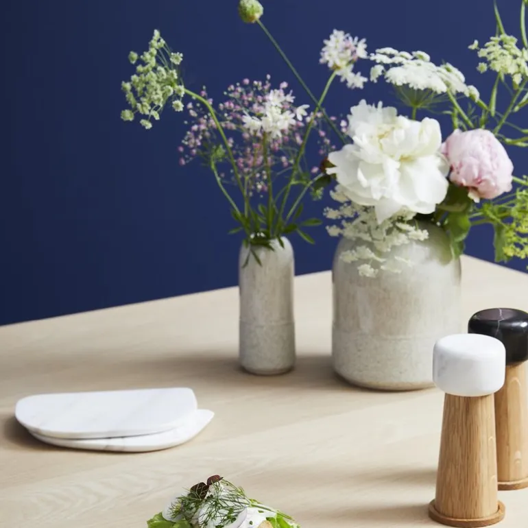 Doma-vasen i størrelse large (18 cm) er utformet med inspirasjon hentet fra katedralers arkitektur, og kombinerer myke linjer med en funksjonell åpning som holder blomster i naturlig og balansert posisjon. Den svakt skrånende kanten bidrar til at stilkene faller vakkert og gir buketten et avslappet uttrykk.