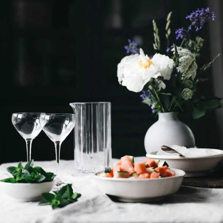 To stykk Nick & Nora drinkglass fra Riedel Drink Specific. Denne glassmodellen er meget populær på barer rundt omkring i verden. Glasset passer derfor til drinker med tydelig brennevinsmak, for eksempel Martini og Manhattan. Glasset har fått sitt navn etter hovedfigurene i filmklassikeren ”The Thin Man”, som var to store Martinientusiaster.