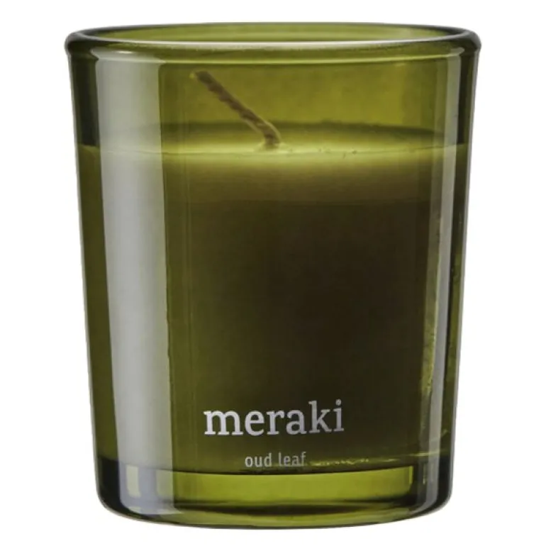 Gjør hjemmet ditt til et fredelig tilfluktssted med duftlyset Oud Leaf 7×6 cm fra Meraki. Duften er en rik og kompleks blanding med grønne toner, geranium og ylang-ylang på toppen. Hjertenotene består av rose, sedertre, sjasmin, iris og liljekonvall som gir en fortryllende blomsterduft, mens bunnen av oud, sandeltre, rav, musk og patchouli gir en varm og dyp finish.