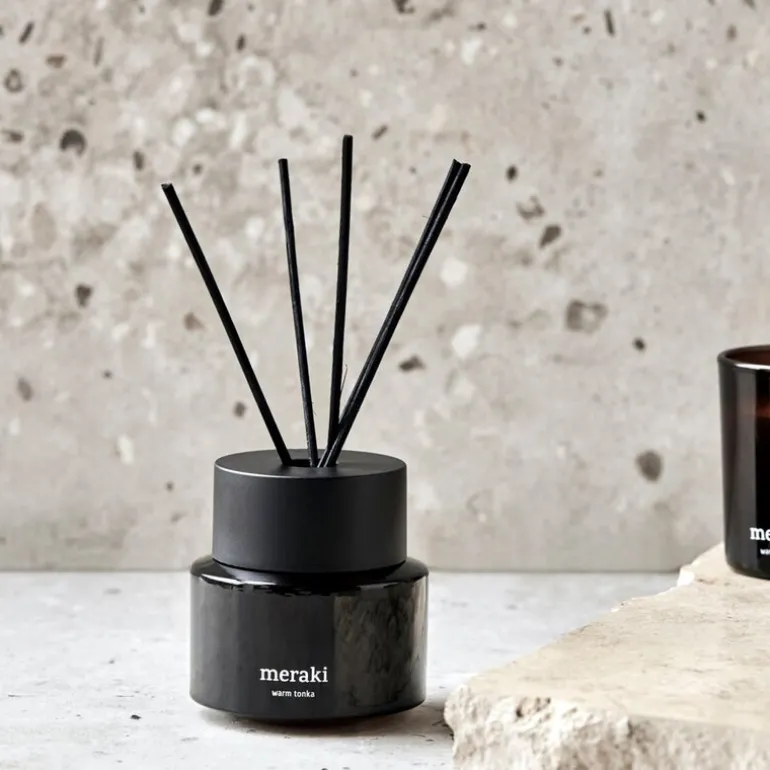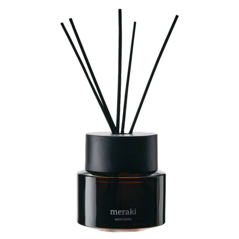Forvandle hjemmet ditt med den varme og innbydende duften av tonka med Warm Tonka 100 ml duftpinner fra Meraki. Denne diffuseren kombinerer forfriskende toppnoter av grapefrukt, mandarin og bergamott med hjertenoter av rose, kanel og lavendel. Den varme tonkabasen gir en langvarig og innbydende duft som skaper en frisk og elegant atmosfære i ethvert rom. Med sin dekorative design og langvarige duft er denne diffuseren perfekt for å tilføre et snev av eleganse og varme til hjemmet ditt.