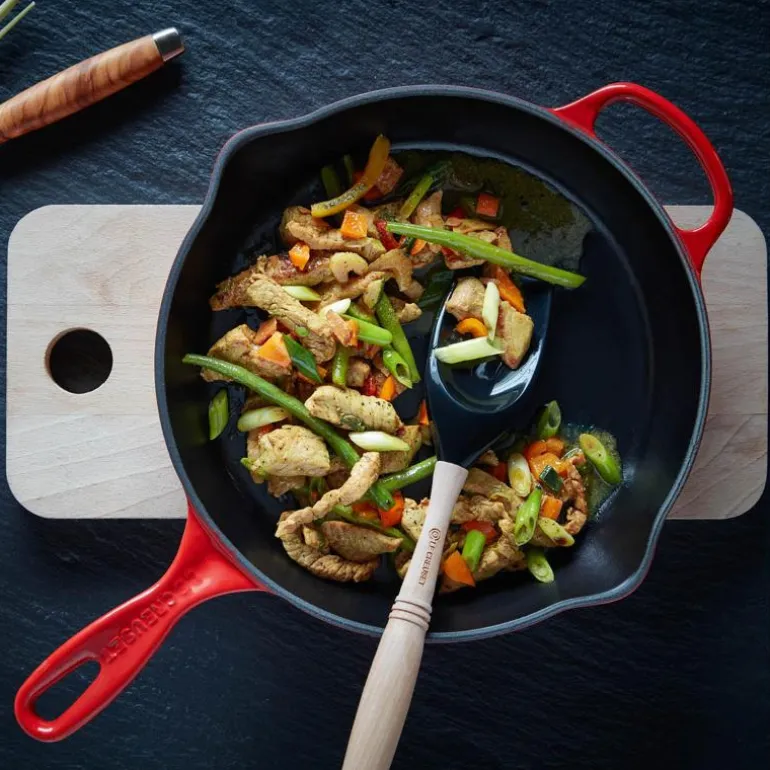 Stekepannen er laget av støpejern og har en emaljert cerise farge, som gir den en elegant og moderne look på kjøkkenet. Den tåler alle varmekilder, inkludert induksjon, og kan også brukes i ovnen. Du kan til og med bruke den på grillristen på utegrillen.