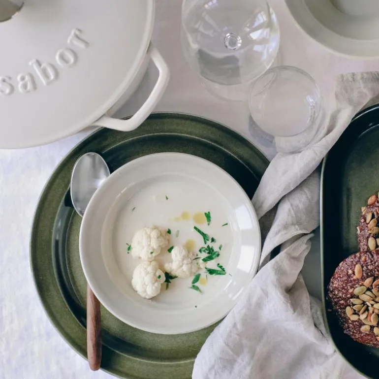Flott og klassisk servise laget i vitroporselen som er produsert på Figgjo, Norge.